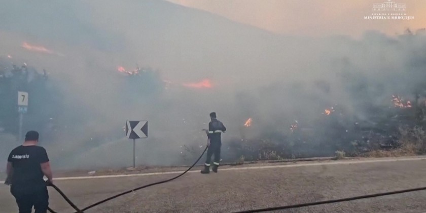 Soldiers and firefighters on Tuesday were battling flames raging near southern Albanian villages near the Greek border, the defence ministry said as a heatwave sweeps the Balkans.