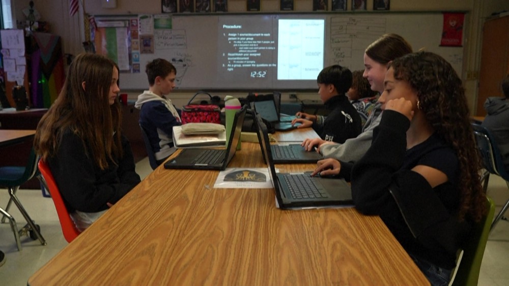 At Mark Twain Middle School, in the US state of Virginia, students are banned from using their phones as part of a trial aimed at improving focus and learning. The school's principal said he thinks the policy eliminates distractions, enhances academic performance, and reduces negative social behaviors. However, students have mixed opinions.