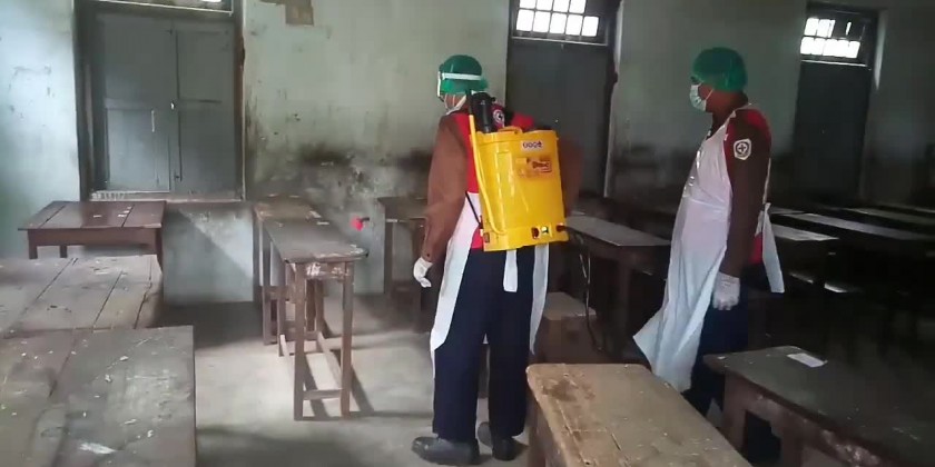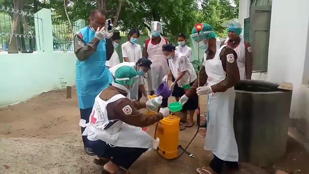 COVID-19 preventive measures have been accelerated across the country. In Taungtha Township of Mandalay Region, under the instruction by the Township COVID-19 Prevention, Control and Emergency Response Committee, disinfectant spraying is being carried out at basic education schools, education office and branch of Central Bank of Myanmar, according to the Information and Public Relations Department.