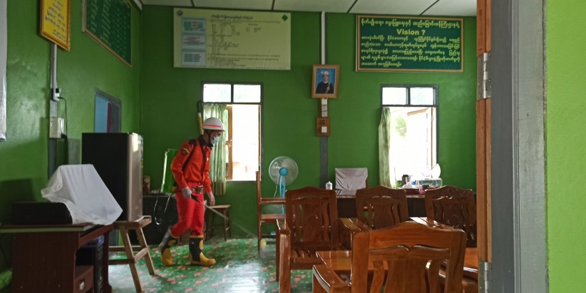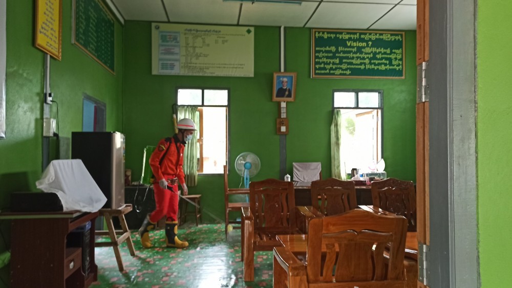Also, in Hakha of Chin State, disinfectant spraying was carried out in District Office, Township Office, Community Center and Library areas. The disinfectant spraying is being also carried out in roads and streets, bus terminals and public areas, according to the Information and Public Relations Department.
