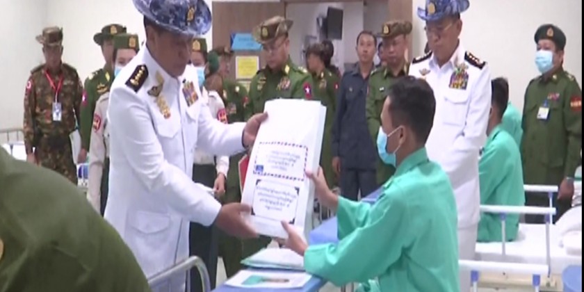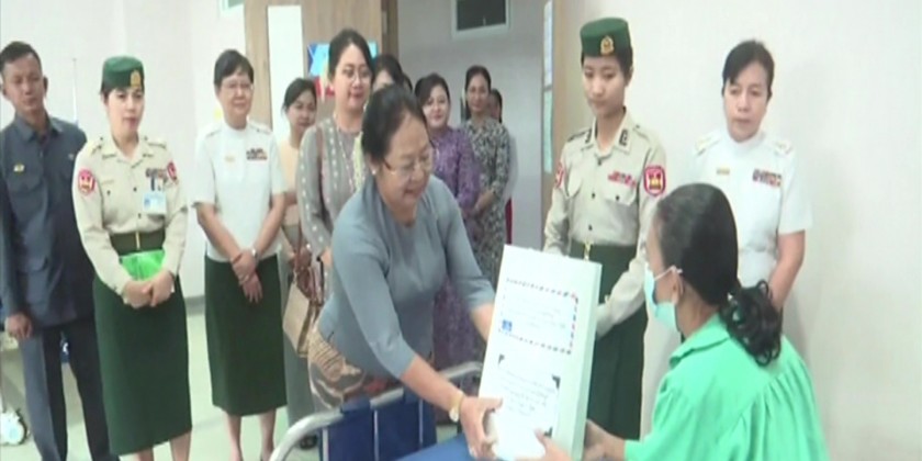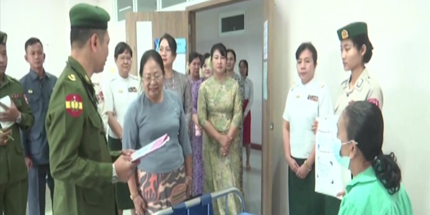 Then, the Vice Senior General comforted the military personnel receiving medical treatment, inquired about the health conditions of each individual and provided foodstuffs and cash assistance. Similarly, the wife of the Vice Senior General and party comforted the patients who were receiving medical treatment at the center and provided foodstuffs.