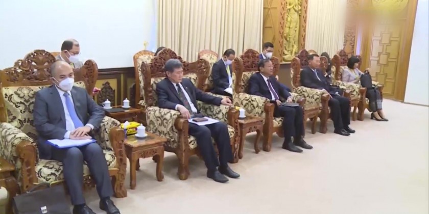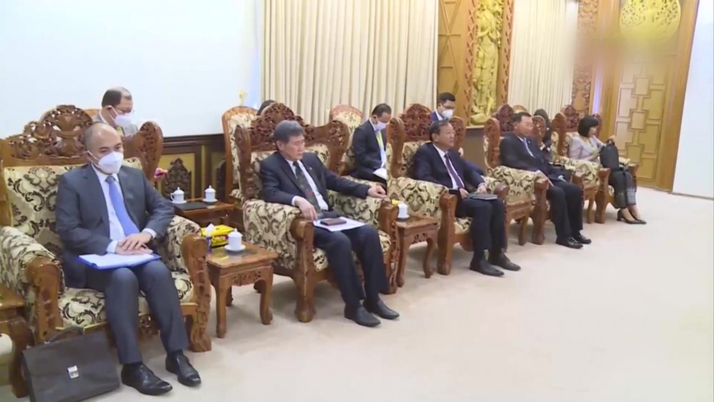 Union Minister for Foreign Affairs U Wunna Maung Lwin received Deputy Prime Minister, Minister of Foreign Affairs and International Cooperation of Cambodia and special envoy of the ASEAN Chair PrakSokhonn and Secretary-General of ASEAN Dato Lim Jock Hoi at the Ministry of Foreign Affairs in Nay Pyi Taw on 21st March.