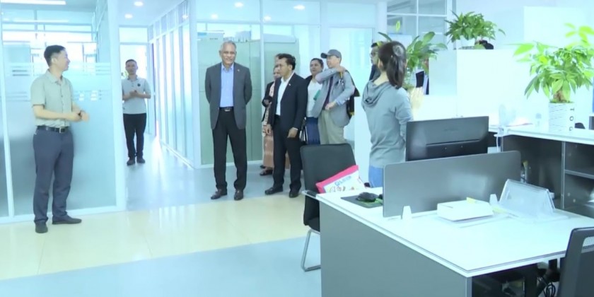 Union Minister for Commerce U Aung Naing Oo, presently in Kunming to participate in the 7th China-South Asia Expo and the 27th China (Kunming) Import and Export Fair hosted in the People’s Republic of China, toured the Yunnan Pan Test Technology Company, located within the Yunnan Industrial Development Zone, at 9:30 local time on Tuesday.