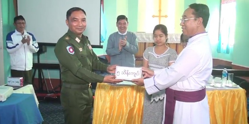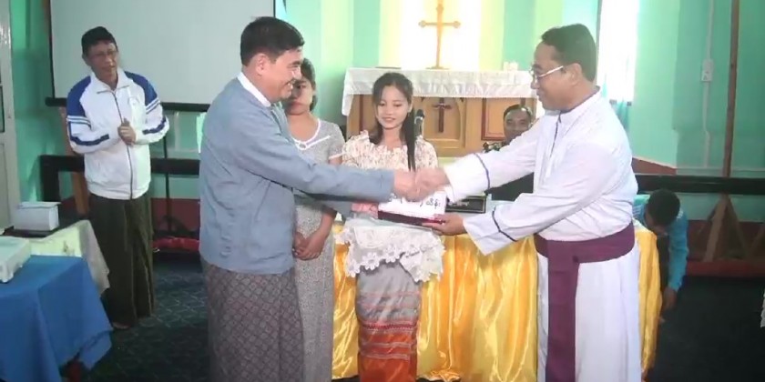 The cash donation of one million Kyats by the Rakhine State Government and half million Kyats by the West Command were presented by the Chief Minister and Commander and the Bishop Dr. James Min Dein accepted.