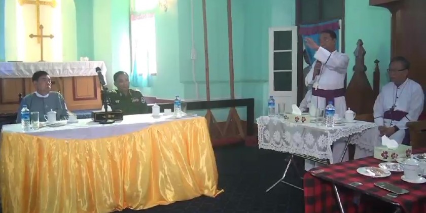 The Rakhine State Chief Minister U Htein Lin together with the Commander of West Command Ma-J Gen. Htin Latt Oo, state ministers met with the Christian Church (Anglican), Archbishop, Bishop of Sittwe and Priests in St Mark's Cathedral, Sittwe in the morning on 25th February.