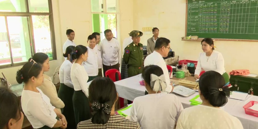 On the morning of March 11, State Chief Minister U Khet Htein Nan conducted a tour to inspect the peaceful conduct of examinations at examination centers in Myitkyina. During the inspection, the State Chief Minister, accompanied by Commander of North Command Ma-J Gen Aung Zaw Htwe and State ministers, visited the examination center at Basic Education High School No. (1) in Myitkyina.