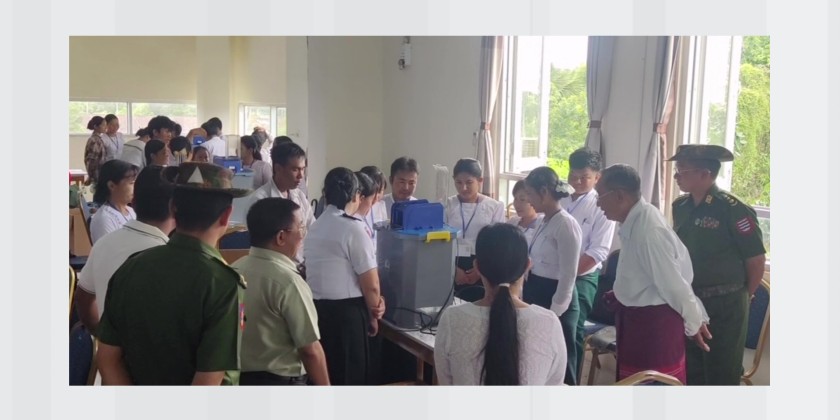 Following this, the SAC member observed the ongoing Myanmar Electronic Voting Machine (MEVM) training, Course No. 6/2025, being conducted at the Shwe Naw Thiri Hall, located within the Community Centre of the Department of Information and Public Relations (Pantanaw).