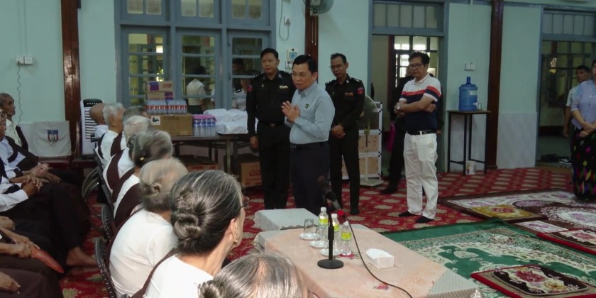 Union Minister for Immigration and Population U Myint Kyaing, accompanied by responsible officials, visited the Settawyar Home for the Aged in Pathein, Ayeyarwady Region, on November 26.
