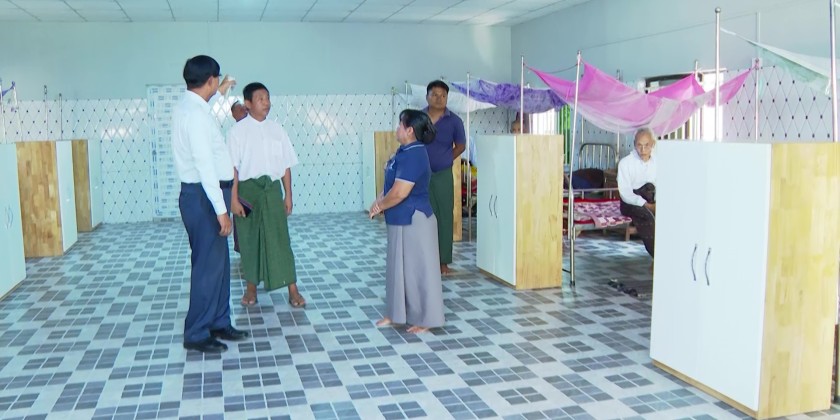First, the Chief Minister and party arrived at the Dae Danaw Home for the Aged in Dae Danaw Model Village, Kungyangon Township. They warmly greeted the 13 residents including 3 elderly men and 10 elderly women and personally handed over donations to each of them. They also visited the dining area and handed over additional donations to the members of the management committee for the Home for the Aged on behalf of the Yangon Region Government.
