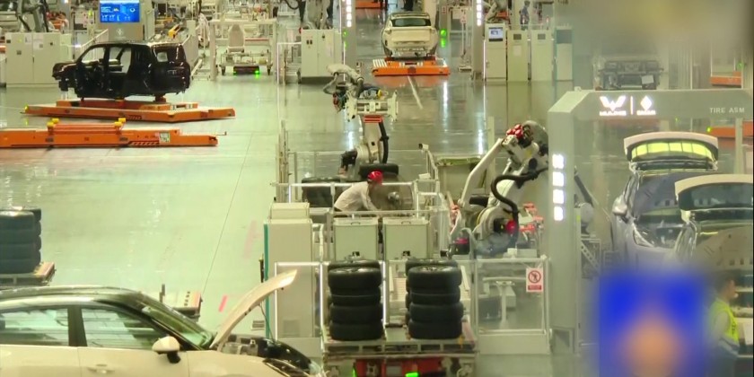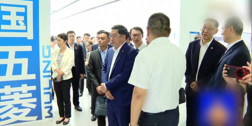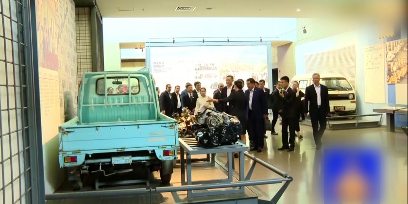 In the afternoon, the Prime Minister and delegation members arrived at the Wuling automobile manufacturing factory of SAIC GM-Wuling Auto Co., Ltd. in Liuzhou. The company's managing director briefed them on the factory's history, the different types of cars manufactured each year, their market sales, and the production of electric vehicles (EVs) since 2017.