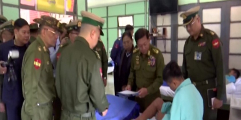 Chairman of the State Administration Council Commander-in-Chief of Defence Services Senior General Min Aung Hlaing and wife accompanied by Chief of General Staff (Army, Navy and Air) General Maung Maung Aye and wife, Commander-in-Chief (Navy) Admiral Moe Aung and wife, Commander-in-Chief (Air) General Tun Aung and wife, senior military officers from Commander-in -Chief office and wives visited Local Military Hospital in Lashio, Shan State (North) and comforted the military personnel and members of Myanmar Police force who are undergoing treatment for injuries sustained during defense and security duties.
