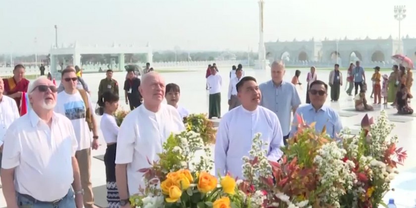Afterwards, the visitors paid homage to the Maravijaya Buddha Image, visited the Agga DhipadhiSasanna Beikman and marble inscription pagodas, Thudhamma shrines, Musleindha Lake and other religious buildings. The delegation led by Colonel General Alexander Vasilyevich Fomin, Deputy Minister of Defence of the Russian Federation, who visited the Maravijaya Buddha Image expressed.