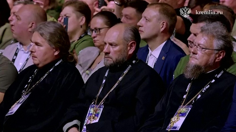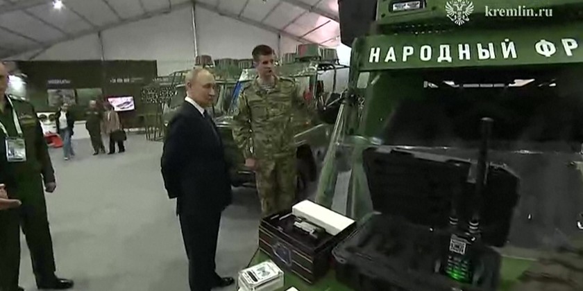 Russian President Vladimir Putin visited the 'Everything for Victory!' forum organised by the People's Front movement, where he is shown displays dedicated to humanitarian missions and developments aimed at evacuating wounded soldiers from the battlefield. Addressing the forum's visitors, Putin stated that in the last three years, "a total of 54.5 billion rubles of people's money" was raised by the People's Front "to support the special military operation, among other things".