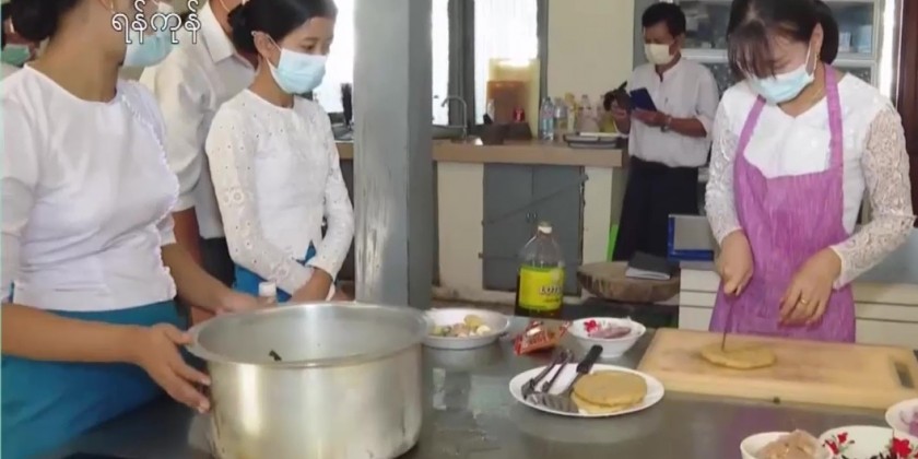 Yangon vocational training school offers 8 courses annually according for those who are interested in vocational subjects. This training course covers 10 kinds of Myanmar traditional dessert making and 10 kinds of curry cooking.