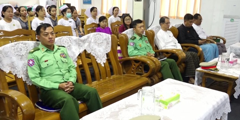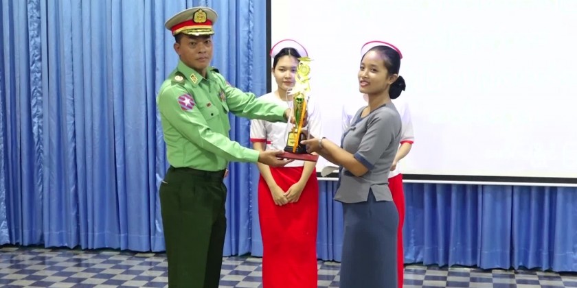 The ceremony of completing 9 months long Nursing aid (outside) training given in 500-bed Mawlamyaing People’s Hospital and 200-bed Women and Children Hospital was held at the meeting hall of MawlaMyaing General Hospital in the morning on October 23rd with the attendance of Mon State Chief Minister U Aung Kyi Thein, Commander of South-East Command Brigadier Genral Soe Min, Chief Justice of State High Court, State ministers, departmental officials and invited guests.
