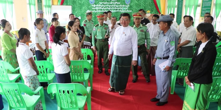 Afterward, the Chief Minister and party attended the opening ceremony of advance domestic science of sewing training batch (7) and Mon traditional hand weaving training batch (23rd) held at vocational Training Schools of Domestic Science for Women of the Education and Training Department under the Ministry of Border Affairs in Mudon Township.