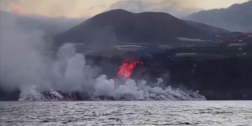 Lava from a volcano on Spain’s Canary Islands has reached the sea after 10 days of wiping out hundreds of homes and causing the evacuation of thousands of residents.
