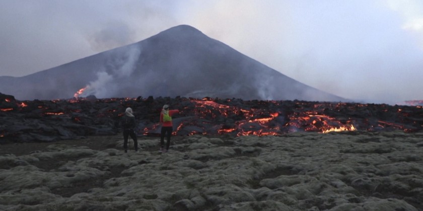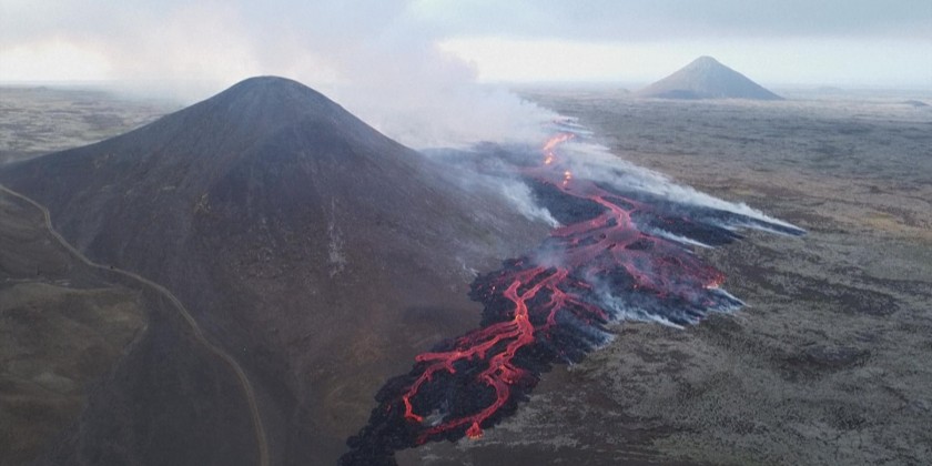 A volcano erupted near Iceland's capital on Monday, the country's meteorological office said, marking the third time in two years that lava has gushed out in the area.