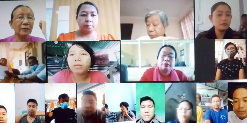 As a first batch of online training, 62 volunteers from Nay Pyi Taw Council, Magwe and Bago Regions and Chin and Kayah States were provided lessons on interaction, counselling, caring for women, elders, pregnant mothers, infants, children, persons with disabilities and those who suffer the chronicle disease. They were also explained about disease prevention measures and systematic wearing of PPE.