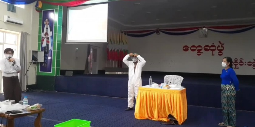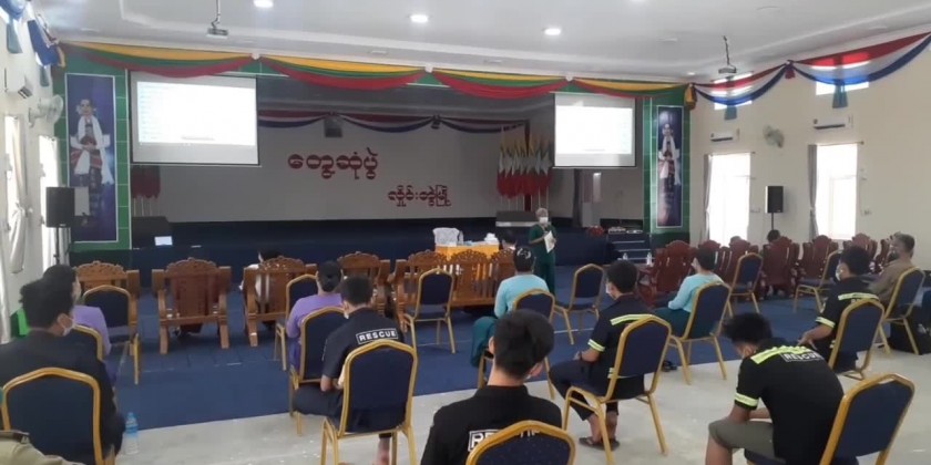 Chairman, Myanmar Rescue Organization (HlaingBwe Township), Lin Lin said “During COVID-19 outbreak, we carry out disinfection tasks in the community wards. This training could help to carry out our rescue works more effectively.”