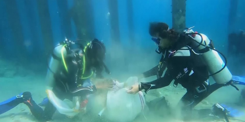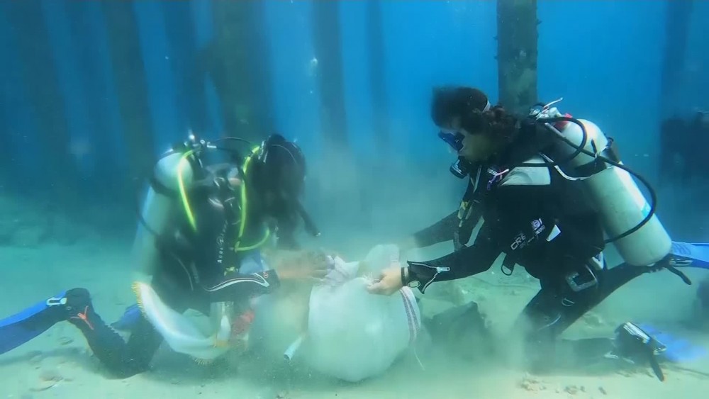 Volunteers cleaned up the seafloor and parts of the beach in the popular Egyptian tourist spot of Sharm el-Sheikh on Friday, collecting several bags of plastic waste.