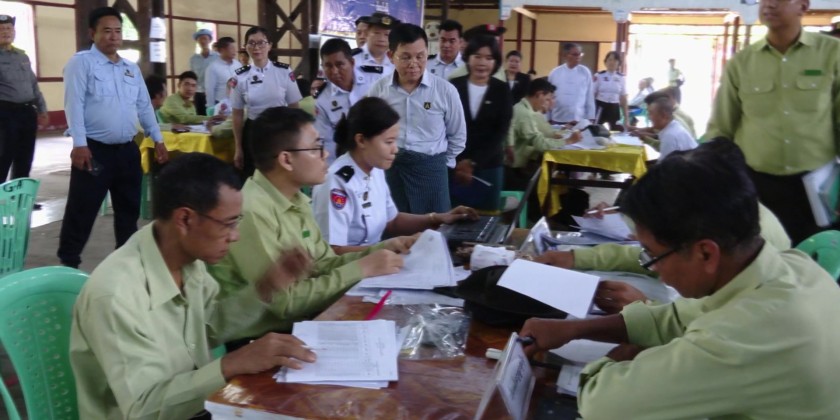 He viewed the staff from Township General Administration Department, Election Sub-Commission, and Immigration Office, conducting field checks for accurate voter lists. He also observed the Pan Khin Project Phase-3 household registration and citizenship card issuance process for residents whose ID cards were lost, damaged, or not yet received.