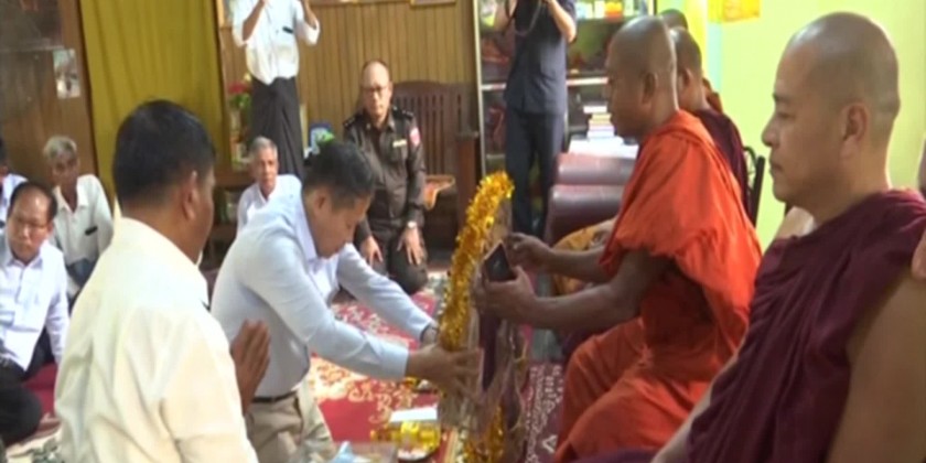 And, the Vice Senior General provided foodstuffs to the governmental departments and volunteering groups. He also visited the Aungmyay Bawdi Dhamma Yeiktha Alotawpyae Monastery and donated rice and offertories.