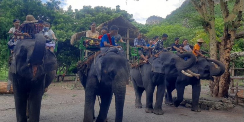 “Wahnet Elephant Camp is steadily developing after closure during the COVID-19. The camp is jam-packed with visitors during holidays. Seven bamboo bungalows have been preparing for visitors. Outdoor stone tables and benches have also made.