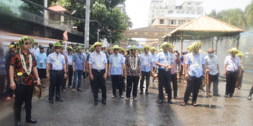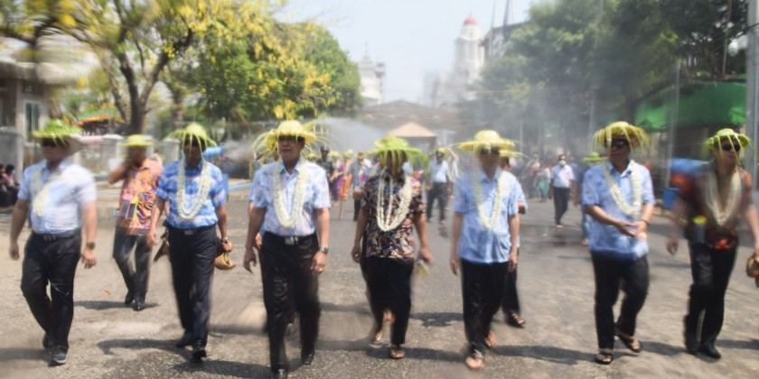 Yangon Region Chief Minister and regional ministers enjoyed the Walking Thingyan on April 14th, the Akya Day of Thingyan Water Festival.