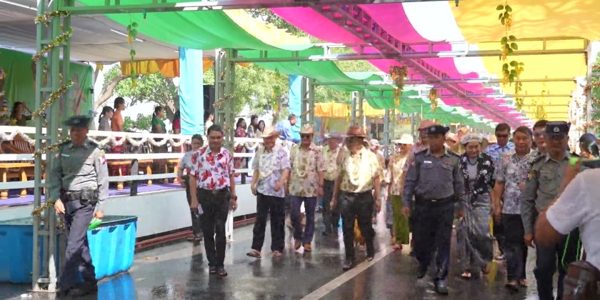 The Region Chief Minister and Region Hluttaw Speaker presented cash awards of honor to the performing dance troupes, and it is reported that they then walked around to observe and encourage the water-playing festivities inside the Walking Thingyan pavilion area.