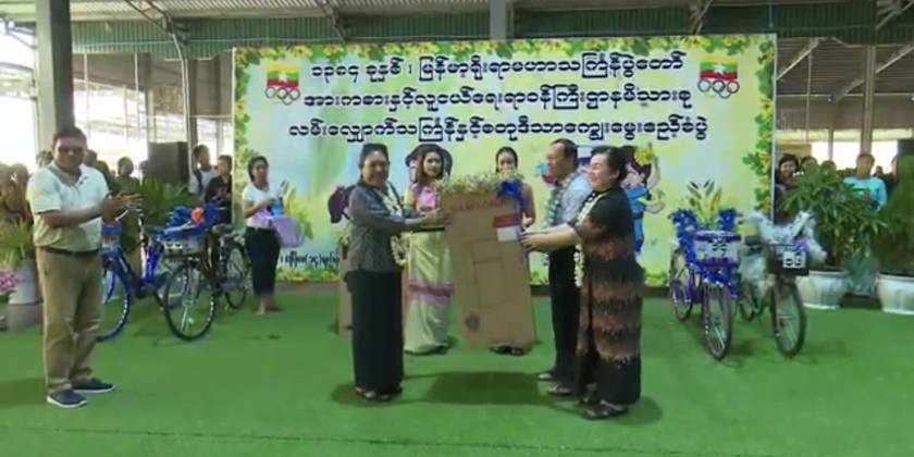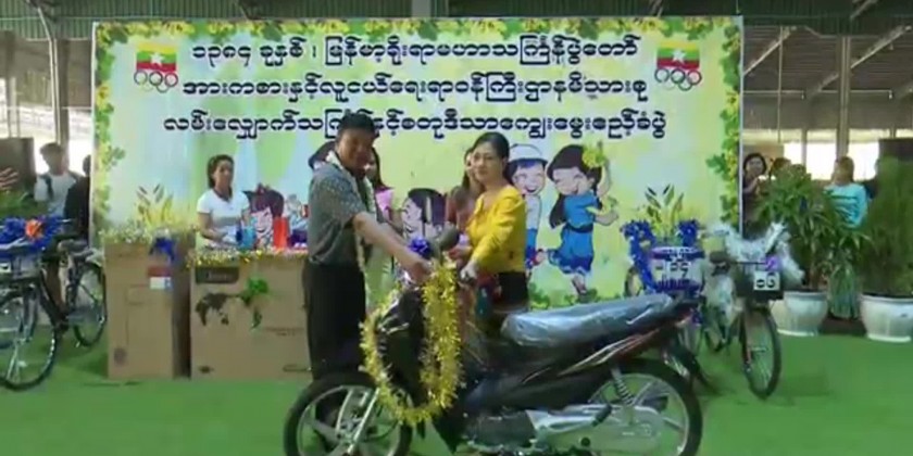 The Union Minister and party also cheered the entertainments of Thingyan songs and dances by the staff and presented cash awards. They also opened up the lucky draw lots for the staff. The Union Minister and party then took part in splashing of water together with the athletes, and enjoyed the performances of songs and dances. The Union Minister also presented cash awards to the performers.