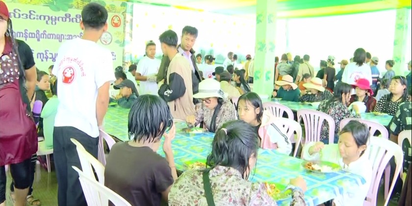 In the Walking Thingyan area, the Speaker and party joined the celebration, along with the revelers, enjoying the water splashing activities and charity feast donation.