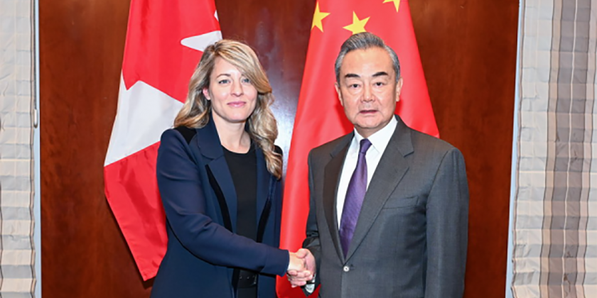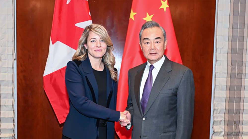 Chinese Foreign Minister Wang met with his Canadian counterpart Melanie on the sidelines of the Munich security conference in Germany. "The two sides are not rivals and should become cooperative partners," Wang said.