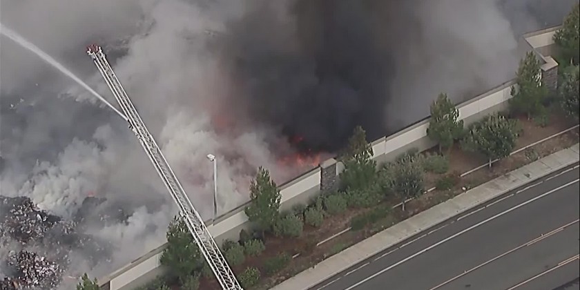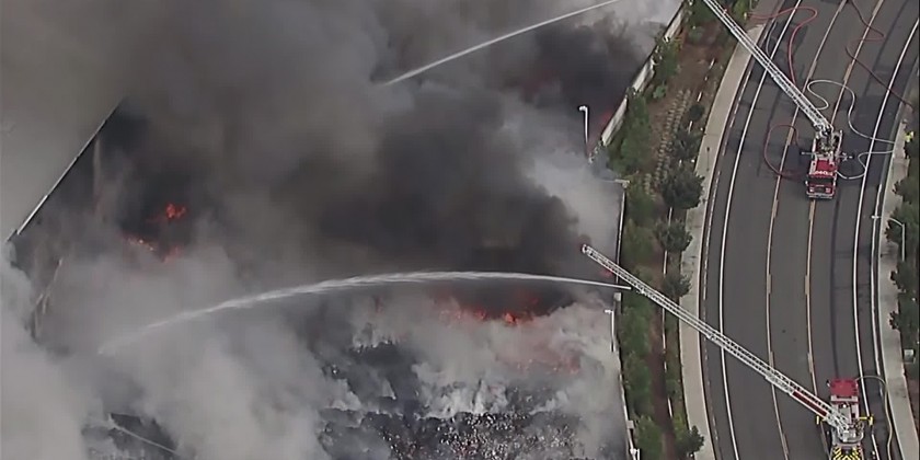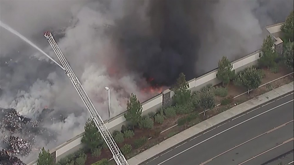 A commercial warehouse near Los Angeles caught fire Monday. A five-alarm fire outside a Riverside County warehouse has left one firefighter injured that were not life threatening as crews continue to battle Monday afternoon. KABC reported that bundles of cardboard and other materials ignited and spread quickly to at least 10 acres. The warehouse sits just a few feet away from Interstate 215 in Riverside County. The cause of the fire is unknown.