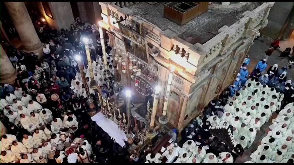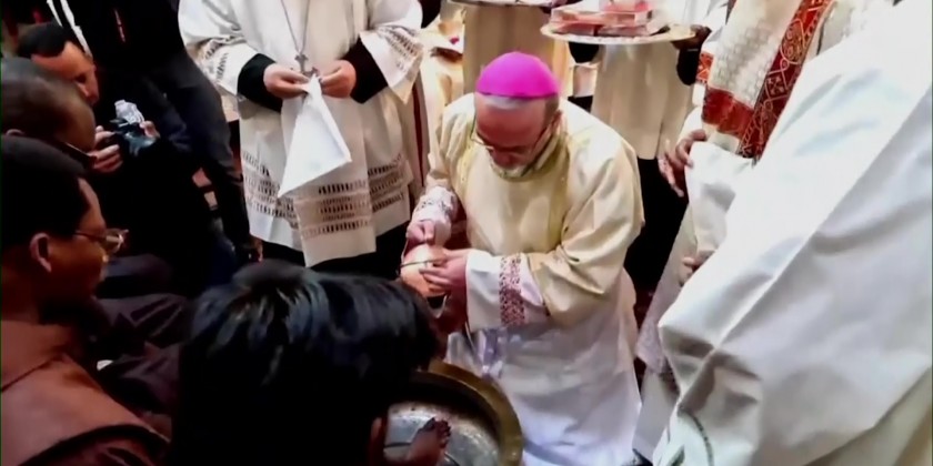 A Holy Thursday ceremony was held at the Church of the Holy Sepulchre as Catholics mark Holy Week in Jerusalem. The ceremony involved a foot-washing ritual that symbolizes Jesus' willingness to serve.