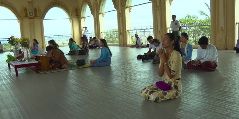 At the Myathalun Pagoda in Magway Region, the pagoda is crowded with pilgrims on the full moon day of Waso.