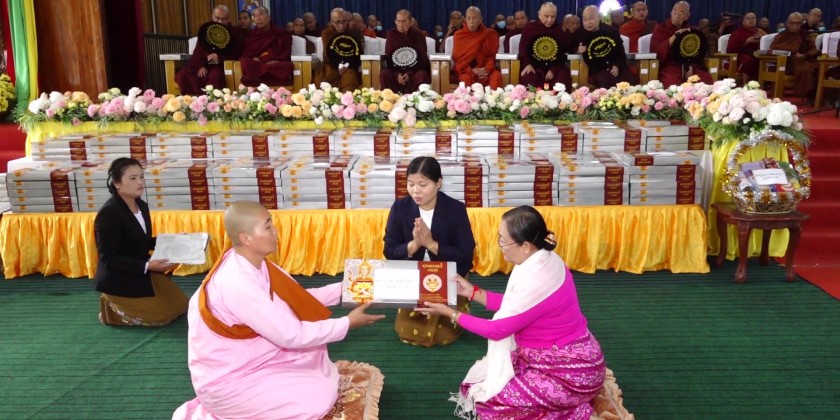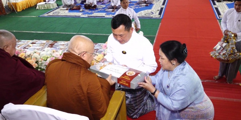 Then, the Chief Minister and wife, Chief Justice of State High Court, State Ministers, departmental officials and well-wishers donated Waso robes and offertories to members of the Sangha. Then, the wives of Chief Minister and Chief Justice of State High Court donated robes and offertories to 5 nuns.