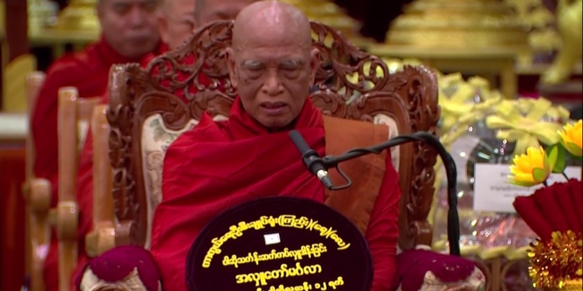 After delivering a sermon by the Masoeyein TaikThit Monastery Sayadawgyi, the congregation shared the merits gained. After the ceremony, the Senior General and wife, the Vice-Senior General and wife, and senior military officers offered day meals to the Sayadaws and members of the Sangha.