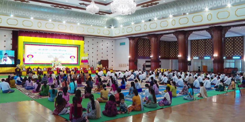 First, the congregation led by Region Chief Minister observed nine precepts administered by Chairman Sayadaw of State Sangha Mahanayaka Committee Presiding Sayadaw of Thanlyin Min Kyaung Pathamabyan Sarthintaik monastery Dr. Baddanta Candimabhivamsa and took the Paritta Suttas.