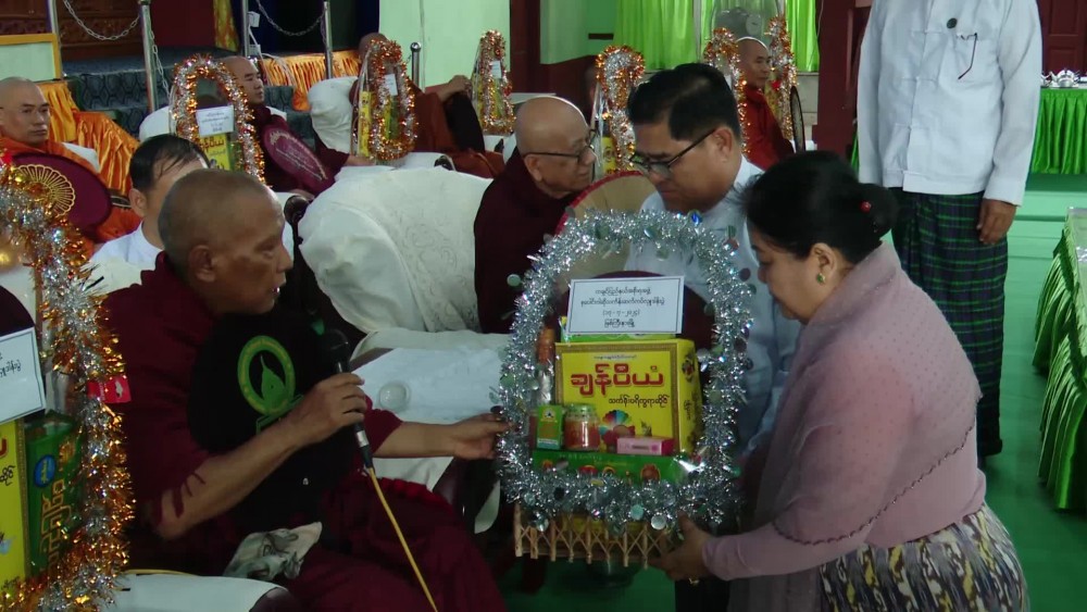 First, the congregation led by Chief Minister U Khet Htein Nan and wife, Chief Justice of State High Court, State Ministers and wives, State advocate General and State/District/Township level departmental officials observed the five precepts, took the sermon and offered Waso Robe and offertories to the members of Sangha. Then, they shared the merits gained and offered day meal to the Sangha.