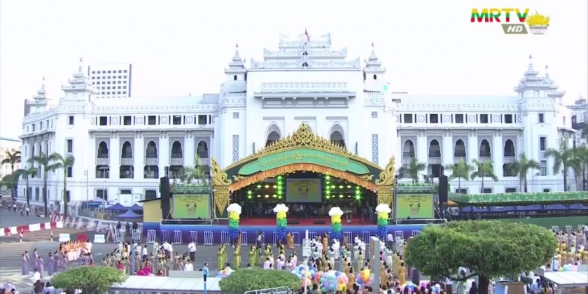 1383 Yangon City Maha Thingyan water pandal was opened in front of Yangon City Hall on Wednesday morning.