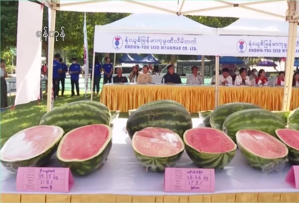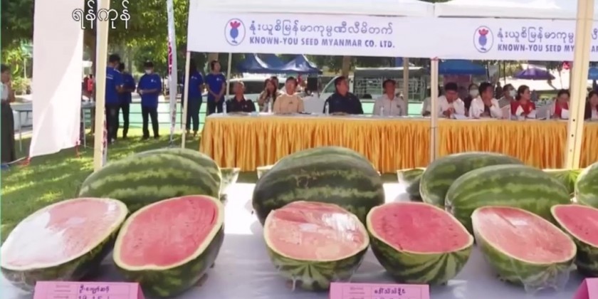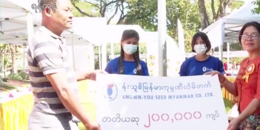 Supervisor, Myint Myint Aye said "We will present cash awards of 500,000 kyats to 1st prize winner, 300,000 kyats to 2 second prize winners and 200,000 kyats to 3 third prize winners. Through the competition, we hope for the emergence of the high qualified watermelons, the better market competition and earning income of foreign currency through watermelon exports. Known- you seed Myanmar Co., ltd will sell pedigree seeds of vegetables. "