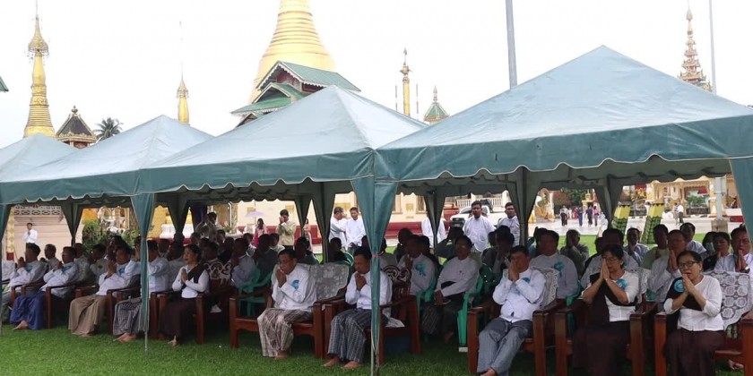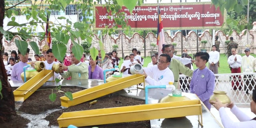 After performing the religious procedures, Chief Minister, Chief Justice of the Region High Court, Region Ministers, Deputy Commander of Coastal Region Command, invited guests and local well-wishers poured the water to the Bodhi trees.