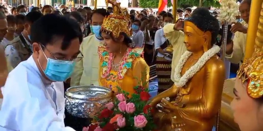 Together with the Chief Minister, Bago Region government ministers, region chief justice, region advocate general, region level officials, members of pagoda board of trustee, members of religious associations and local people also attended the ceremony.