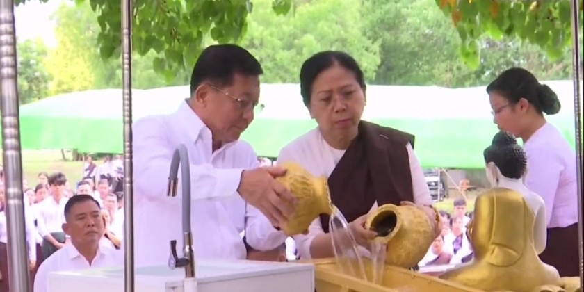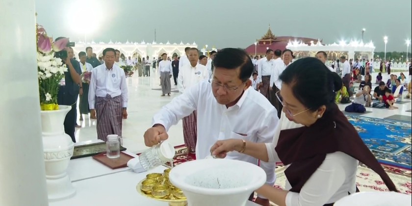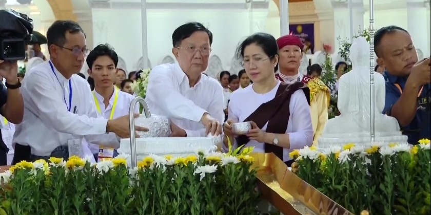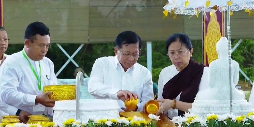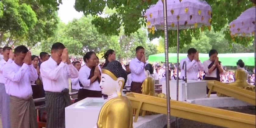 Prior to the event, the Prime Minister and wife offered flowers, water and light to the Maravijaya Buddha Image. This was followed by pouring of water to the Maha Bodhi tree, participated by the Prime Minister and wife, Vice Chairman of the State Administration Council Deputy Prime Minister Vice Senior General Soe Win and wife, Council Secretary, Join-Secretary, Council members, union level personnel and their wives as well as the Wut Associations.
