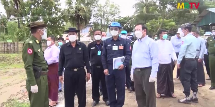 Mayor U Bo Htay and officials reported on progress of work. The Chief Minister instructed officials to soonest complete the projects and presented COVID-19 protective equipment including PPE suits to philanthropic organizations from Hmawby Township.