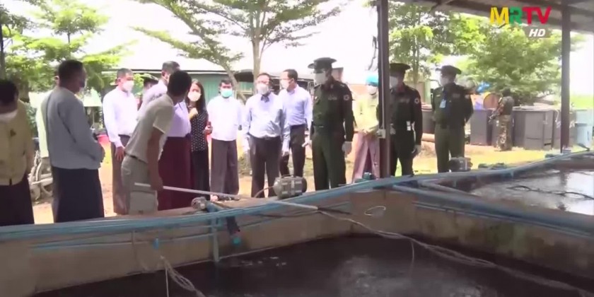 The region Chief Minister, the Commander and party also visited a private fish farm and an organic vegetable patch on 100 acres of land in Nyaunghnapin agriculture and livestock zone in Hmawby Township.