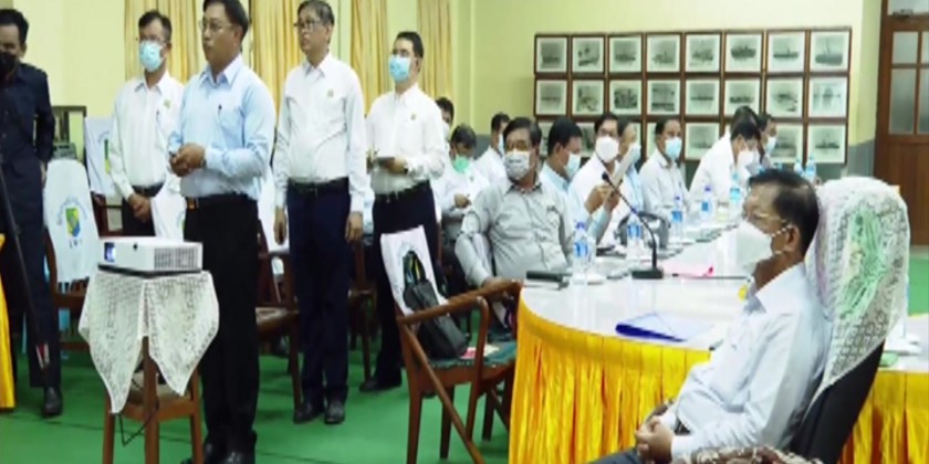 Union Minister for Transport and Communications Admiral Tin Aung San and officials reported on the work undertakings and future plans.