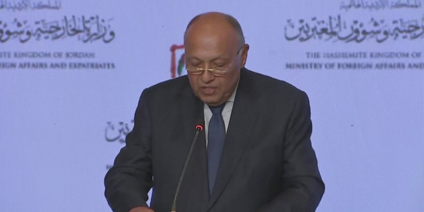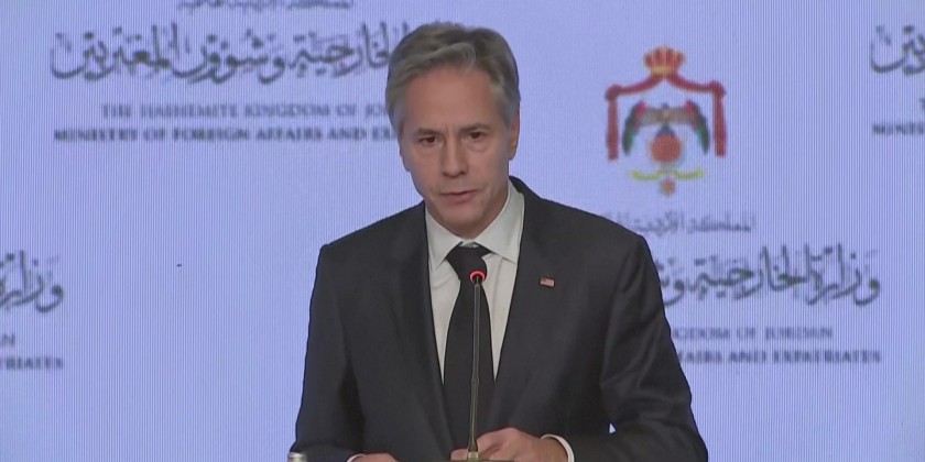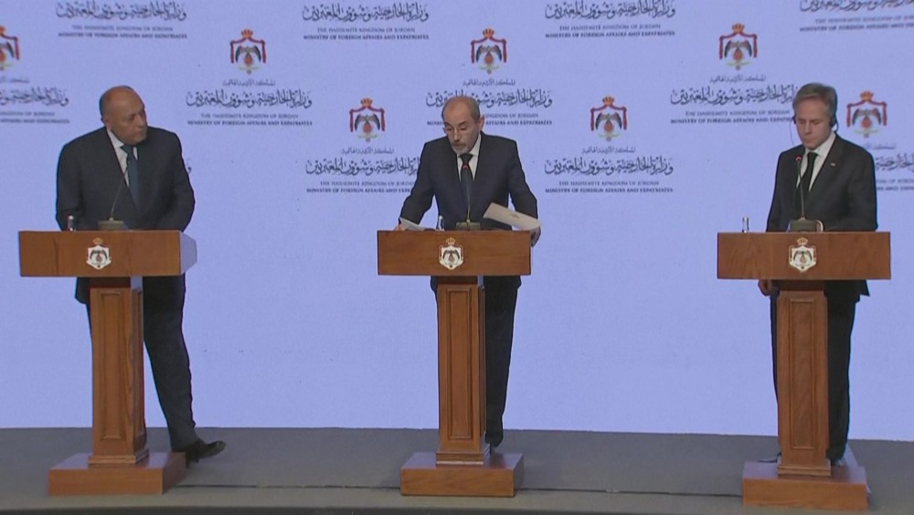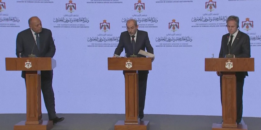 US Secretary of State Antony Blinken holds a joint presser with Egyptian Foreign Minister Shoukry and Jordanian Foreign Minister Safadi in Amman, Jordan.