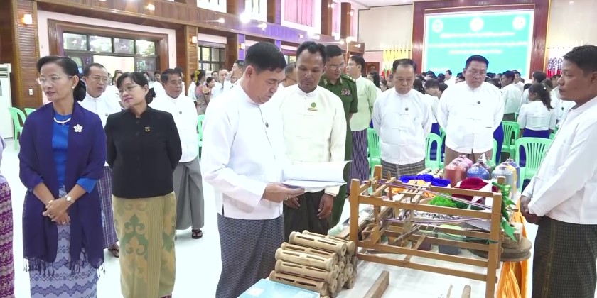 The opening ceremony of the Weaving and Production Technology Training Courses under the Small-Scale Production Business Creation and Rural Household Income Enhancement Project, organized by the Rakhine State Department of Small-Scale Industries, was held at the Khaing Thazin Hall in Sittwe on September 23. Rakhine State Chief Minister U Htein Lin attended and delivered the opening address.